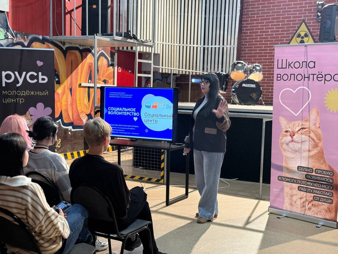 В молодежном центре «Русь» продолжает работу недавно открывшаяся «Школа волонтеров». Очередное занятие стало для ребят по-настоящему значимым: с лекцией о социальном волонтерстве перед ними выступила Виктория Богданова, специалист по социальной работе отделения активного долголетия и организатор проекта «Серебряное волонтерство» в Коломне.